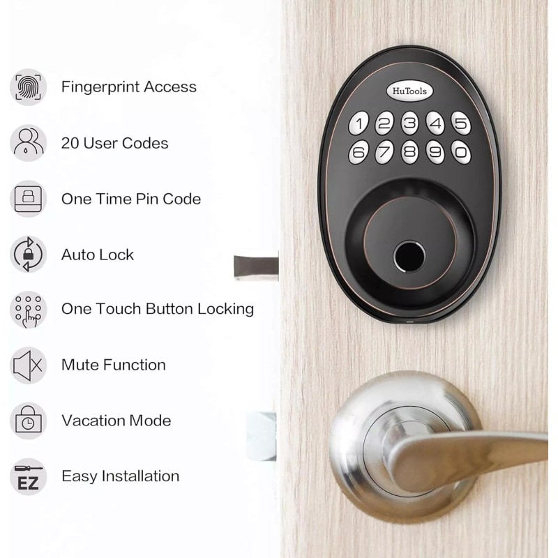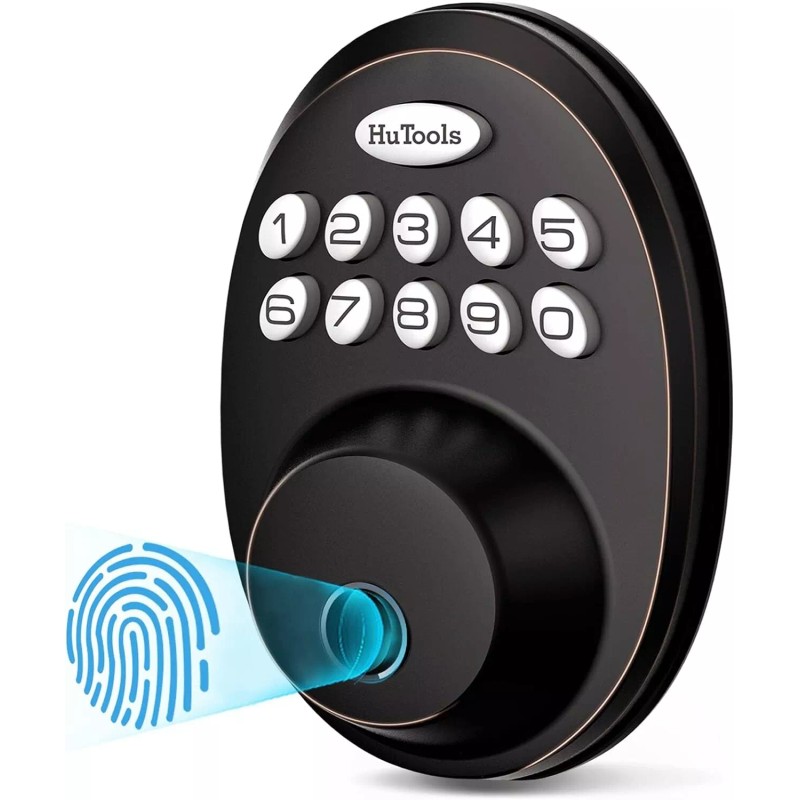 HuTools Biometric Electronic Keyless Entry Door Deadbolt Lock Fingerprint with Keypads