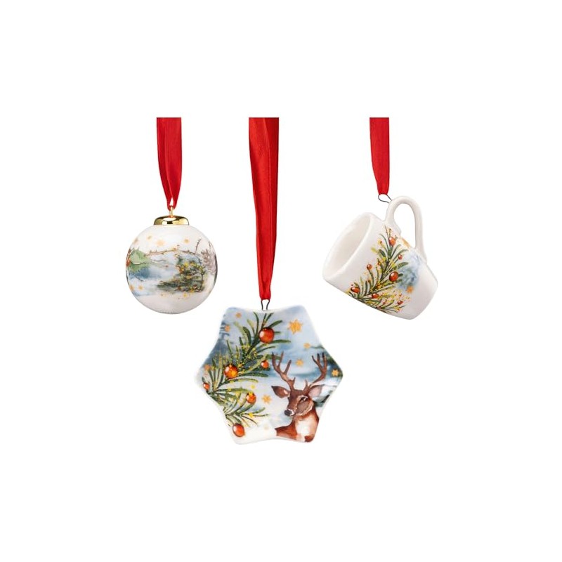 - Perfect for an atmospheric Christmas tree, the set includes a mini star plate, a mini mug and a porcelain mini ball.