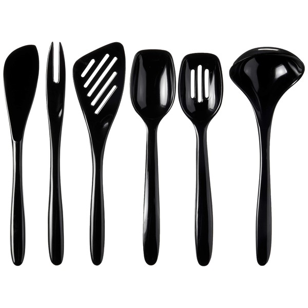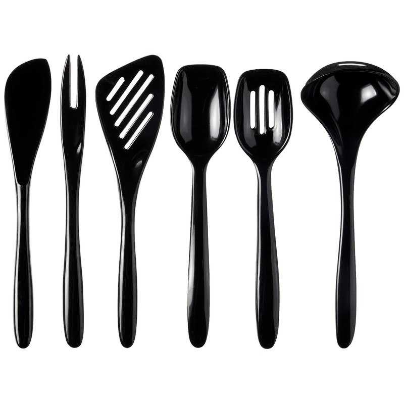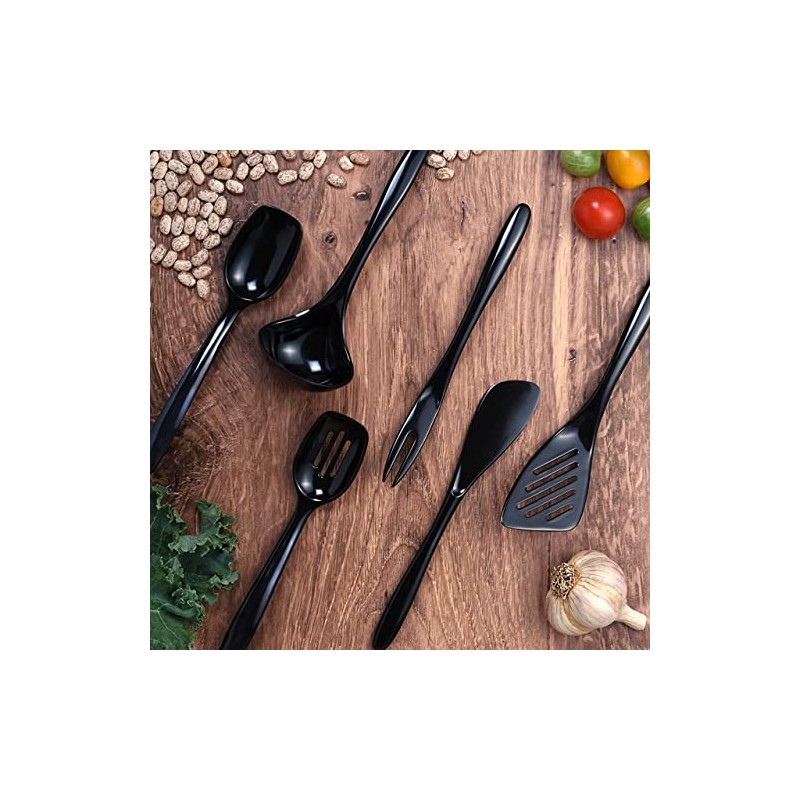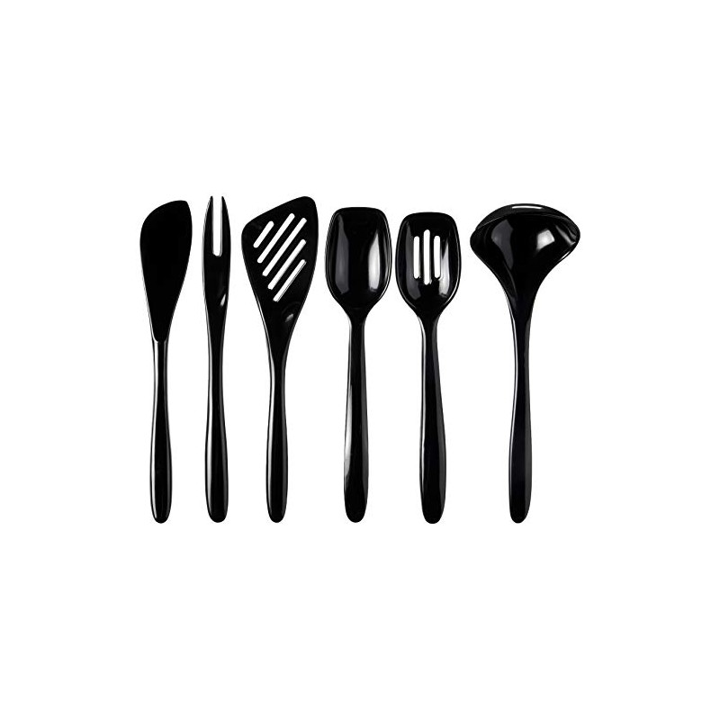 - Set of 6 Melamine mini utensils: Spoon, slotted Spoon, spreader, Fork, slotted turner, Ladle