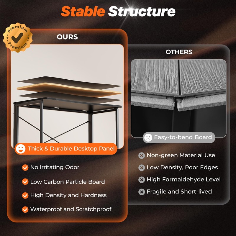• 【18.9 Inch Deeper Desktop】Deeper desktop of the foldable office desk offer more space for laptop, notes and books... Sturdy 18mm thick steel legs and X-frame support make this home office desk stay rock-solid, less wobbling here. Say goodbye to sharp edges! The smooth, body-friendly curved desktop eases your hands, providing a more comfortable experience whether you’re working, studying, or doing makeup