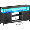 - 【LED TV Stand】Use LED lights to add watching vibes. Easily switch between 12 scene modes, adjustable speed levels, and 3 brightness modes with the smart controller. Or use the app to explore over 60,000 colors, timing mode, mic mode, and music mode. Plus: Contain patent pending drawer slide