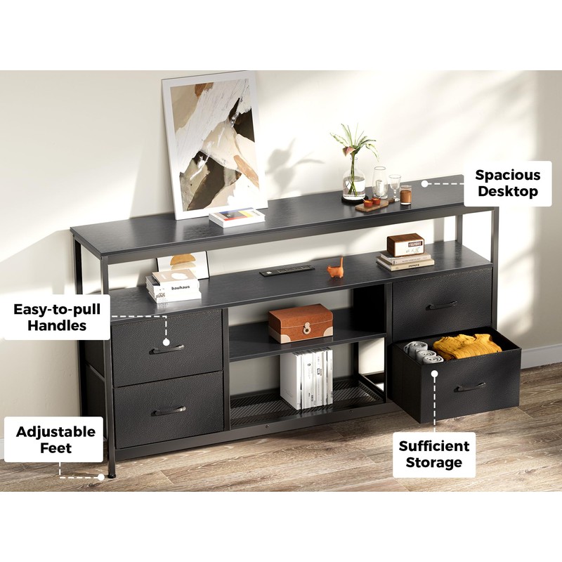 - 【Support TV & Ample Storage】Support and style go hand in hand with our robust TV stand. Ideal for TVs up to 65 inches, it features 4 sleek fabric drawers and a large tabletop for all your storage needs. Adjustable shelving offers flexibility for items big or small—be it your sound system or your favorite games