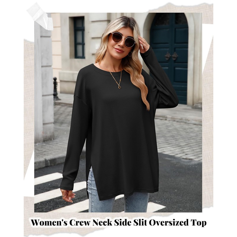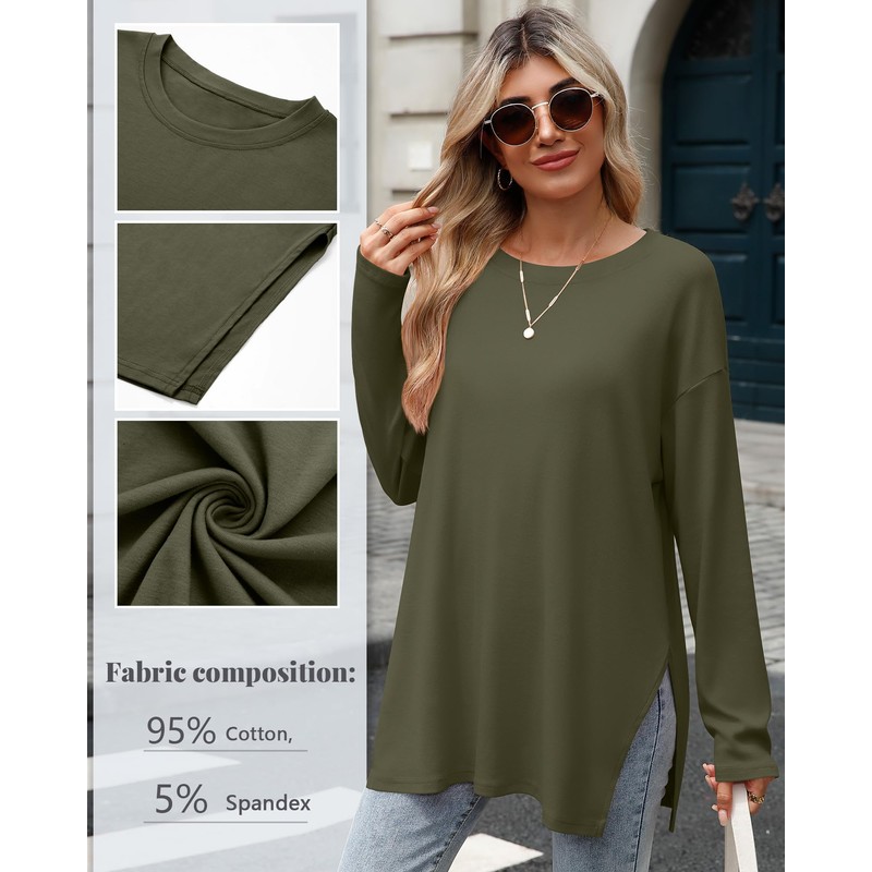 - Oversized Design: these cotton long sleeve shirts for women feature an oversized, round neck and side splits for easy movement; The dropped shoulder style weakens the shoulder line, modifies your figure, and creates a casual style