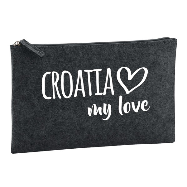 Huuraa Croatia My Love Toiletry Bag Gift 1 Litre Charcoal Felt Croatia Gift Idea