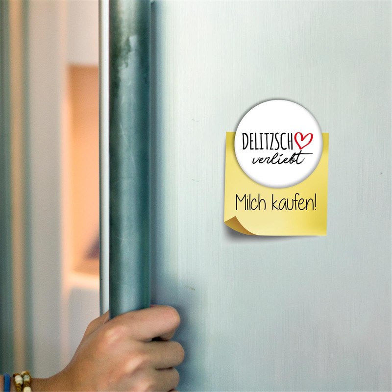 Huuraa Delitzsch in Love Fridge Magnet Size 59 mm with Name of Your Favourite City in Saxony Gift Idea for Friends and Family