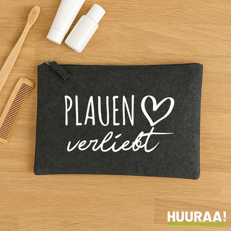 Huuraa Kulturbeutel Plauen verliebt Geschenk 1 Liter Charcoal Filz Plauen Geschenkidee