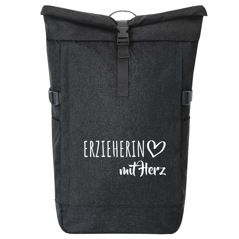 Huuraa Messenger Backpack Educator with Heart Gift 30-44 Litres Black Melange Roll-Top Fairtrade Educator Gift Idea
