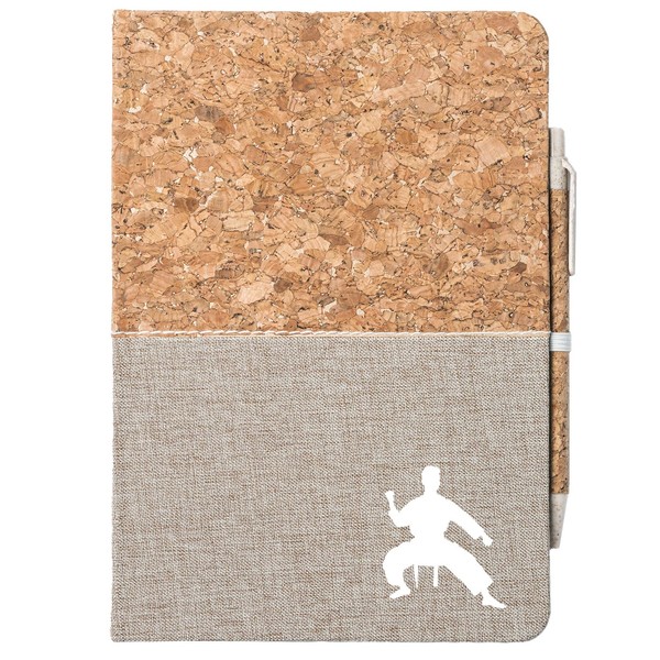 SUSTAINABLE MATERIALS This Taekwondo notebook is made of cork, cotton, wheat fiber, and paper - a stylish and eco-friendly choice for everyday use.