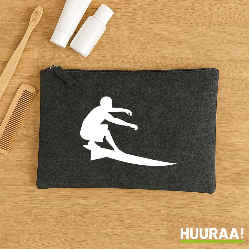 Huuraa Toiletry Bag Surfing Silhouette Gift 1 Litre Charcoal Felt Surfing Gift Idea