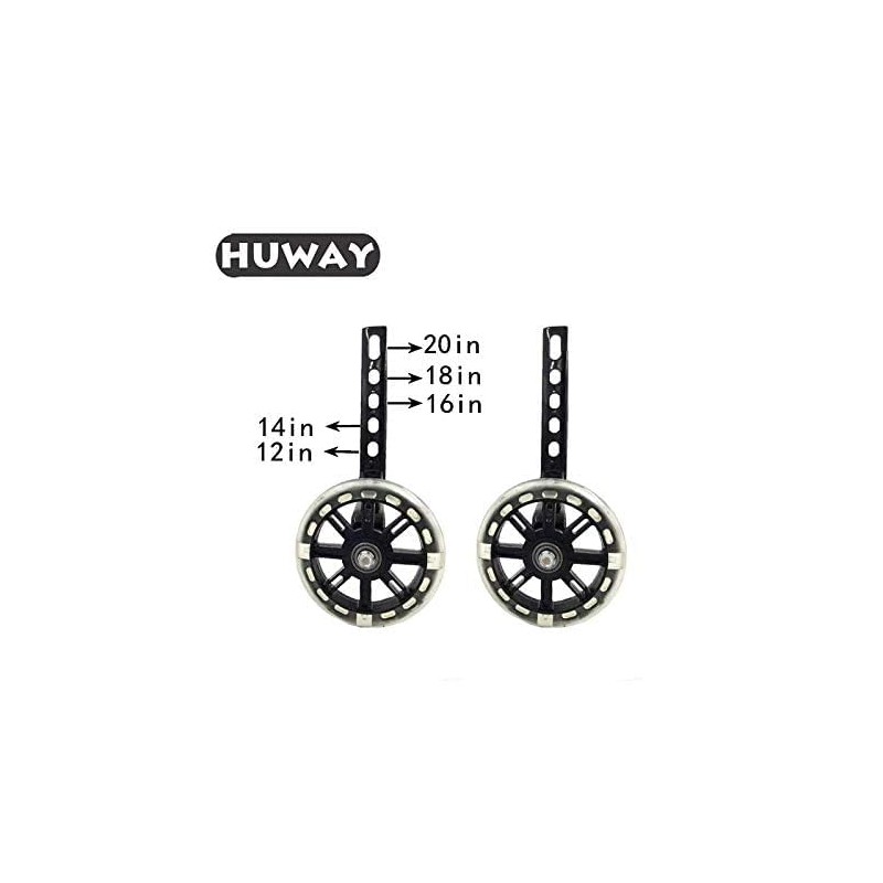 HUWAY training wheels flash mute wheel bicycle stabiliser mounted Kit compatible for bikes of 12 14 16 18 20 Inch, 1 Pair (BLACK 3)