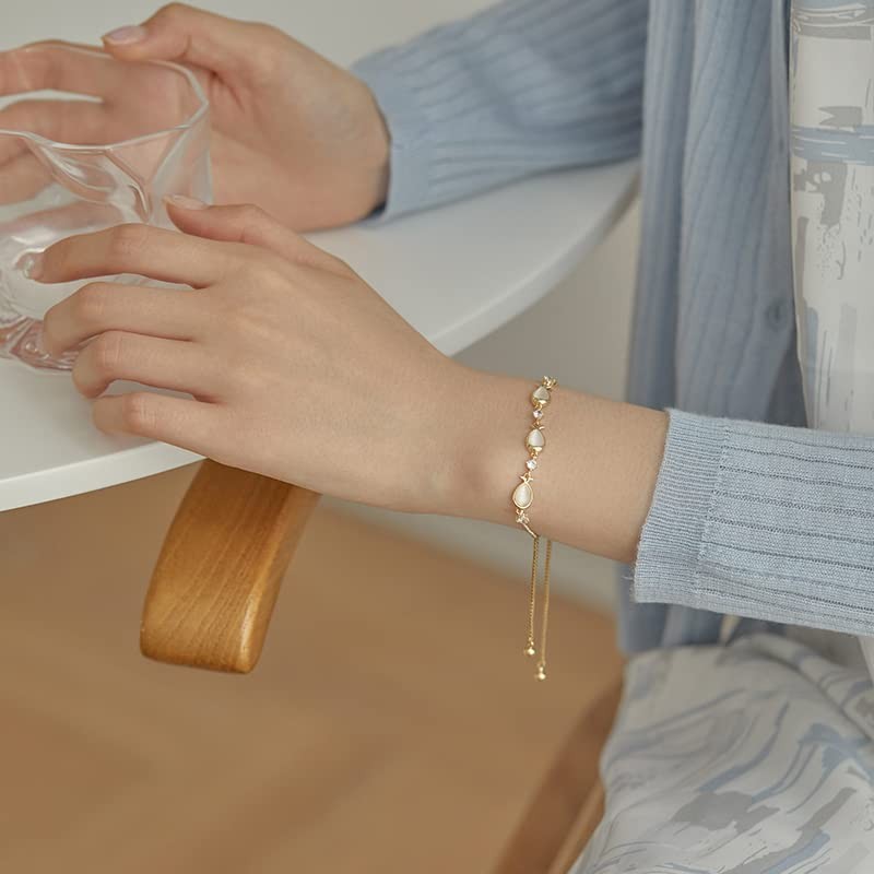 HUWODY 14K Gold Plated Bolo Bracelet for Women Cat Eye Stone Bracelet Adjustable 5.5"-10.5"