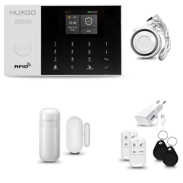HUXGO® HXA005 Alarm System Home WiFi + GSM 4G LTE with Siren Alarm System with Motion Sensor, Window Alarm / Door Alarm | Mobile Home Alarm System Remote Control | Smart Home Security TUYA