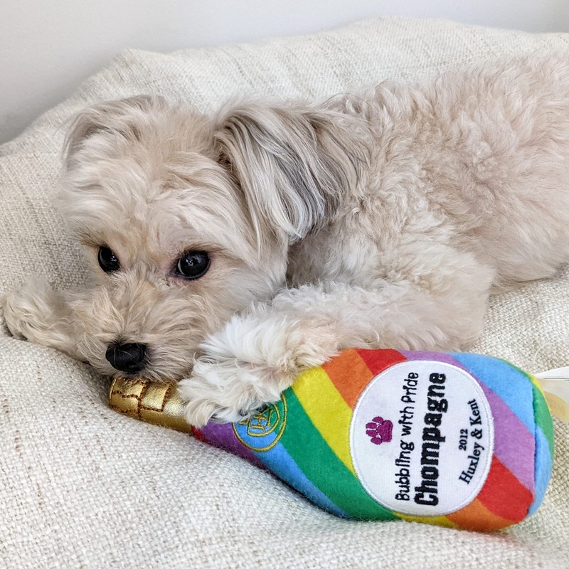 Huxley & Kent for Dogs | Bubbling with Pride Chompagne (Small) | Power Plush Dog Toy with Squeaker | Funny Dog Gift | Fun, Durable, and Safe | H&K Squeaky Dog Toys