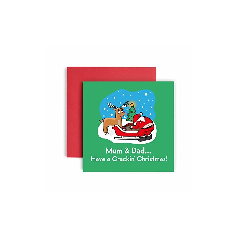 Huxters Have a Cracking Christmas Mum and Dad Merry Christmas Card – Christmas Parents Cards with Blank Interior - Xmas Card with Recyclable Envelope – Paper Funny Card for Parents (Mum and Dad)