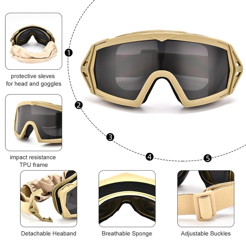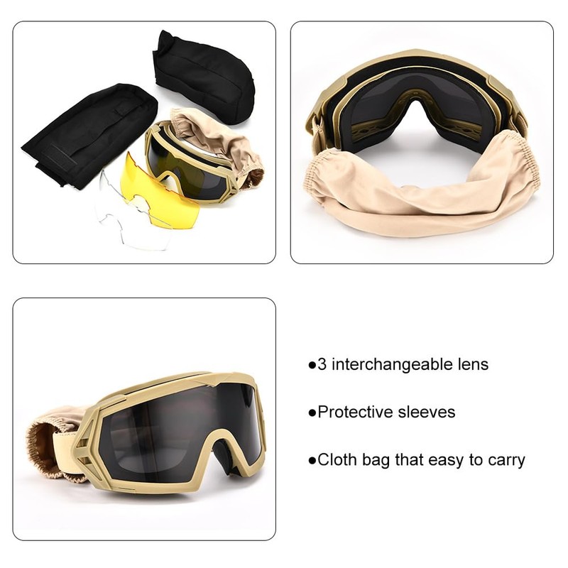 huxychao Tactical Airsoft Goggles with 3.5mm-Thick Anti-Fog Lens, Ballistic Safety Goggles for Shooting Hunting, Paintball (Khaki)