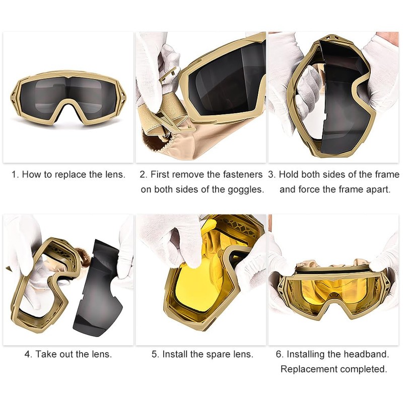 - Interchangeable lenses: 3 color lenses - yellow and smoke and clear, quick and tool-free lens changes. Lens selection makes them suitable for any type of light in most situations and weather