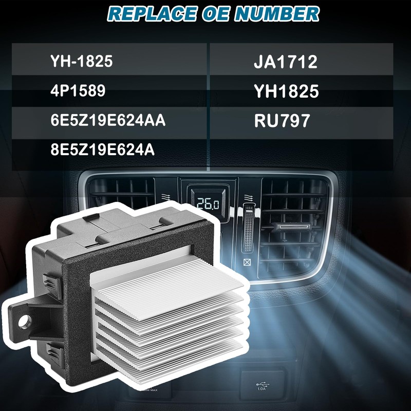 • 【REPLACE PART NUMBERS】 -HVAC A/C blower motor resistor module Replace 6E5Z19E624AA, 8E5Z19E624A, JA1712, YH1825, RU797,4P1589 Please note that this Front HVAC Blower Motor with dual zone automatic temperature control. Easily located on the passenger side near the blower motor