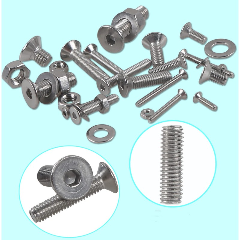 - 【MATERIAL】Nuts and bolts set are made of high-quality 304 stainless steel. After rust prevention treatment, assorted nuts and bolts have good corrosion resistance, high temperature resistance, strong oxidation resistance, is not easy to rust, wear-resistant. Machine Screw & Nut Kit have smooth surface and is durable. The thread is deep, the pitch is even, the lines are clear, the use is balanced, and the fastening is good. The tail is easy to use and will not slip.