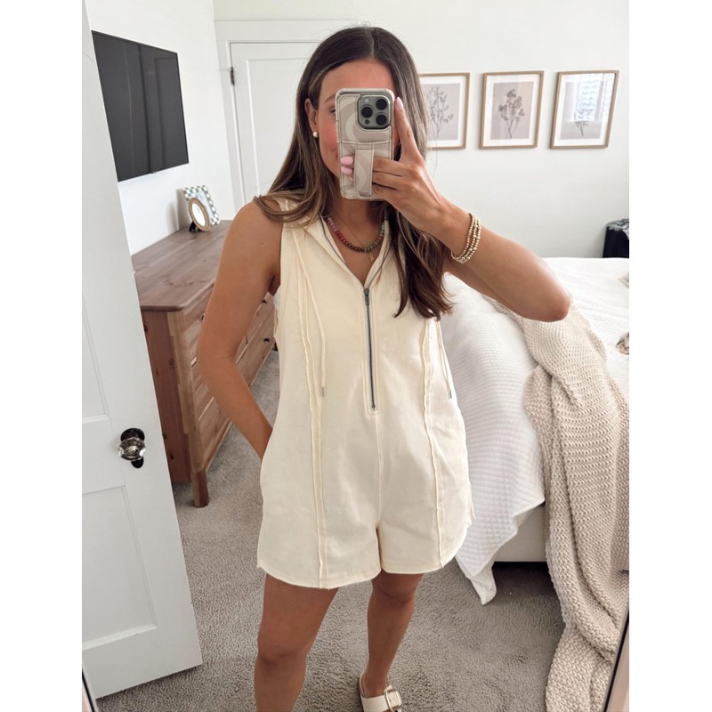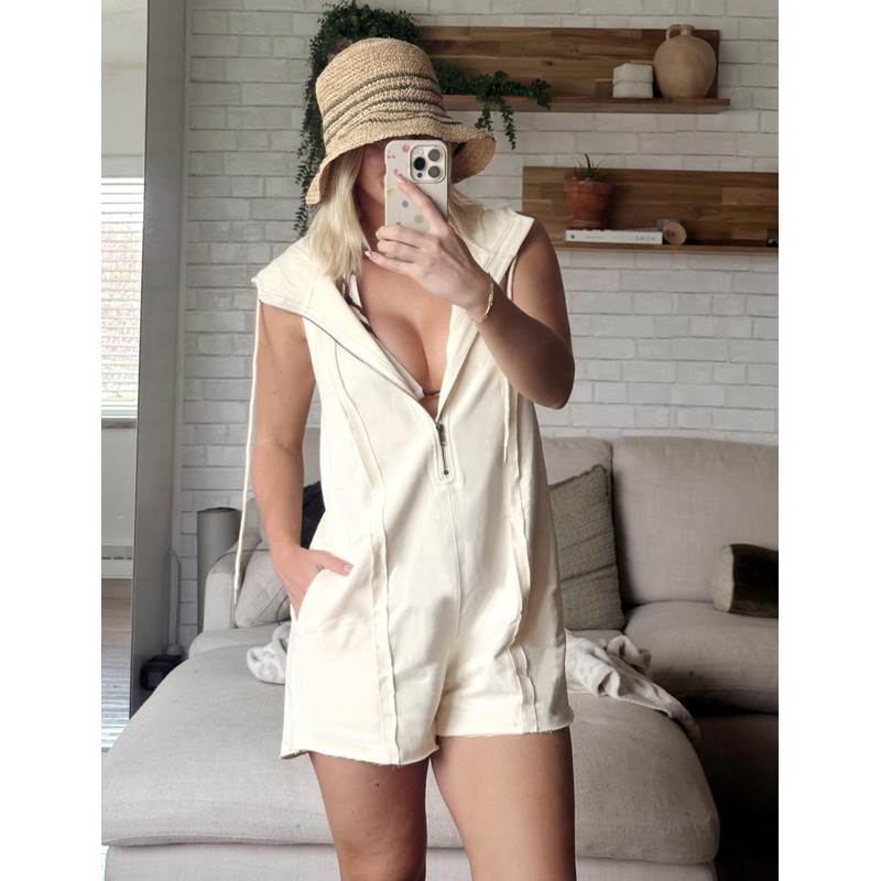 - Elevate your summer wardrobe with women's leisure sleeveless hood, featuring a stylish casual zip-front neckline romper that combines comfort and trend for every occasion