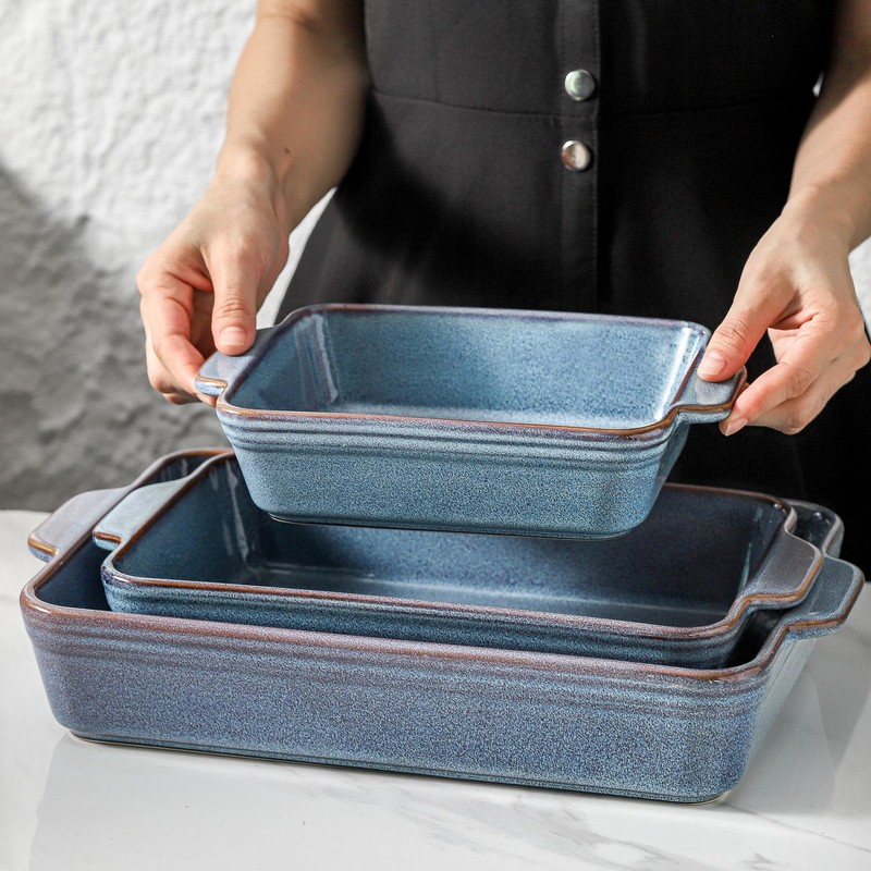 - Easy to Clean: The smooth glaze protects the stoneware bakeware from stains, making it easy to clean by dishwasher or hand, without worrying about breakage and glaze wear. It is safe for refrigerators, microwave ovens, ovens and dishwashers.