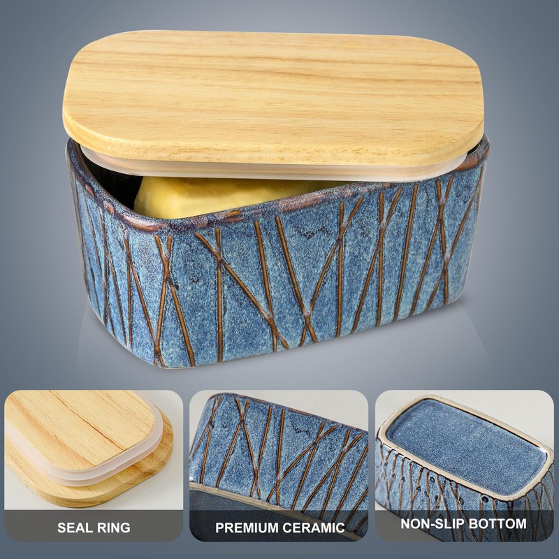 - Keep Butter Fresh: The wooden lid is sealed with silicone ring, which can isolate air and keep butter fresh. While preventing food from deteriorating, it can also prevent butter from mixing with other foods in refrigerators or kitchens. And you can use the lid to make a butter cutting board and cut butter on it.