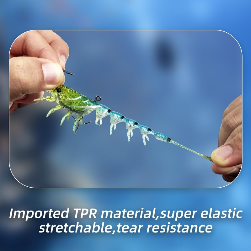 - 【HIGH QUALITIES】 - Shrimp lures are made of an environmentally friendly, high-quality TPR material, which is super elastic, stretchable, and tear-resistant.With BKK high carbon steel treble hook, excellent puncture ability, and strong abrasion resistant in saltwater and freshwater. Hviomru shrimp lures are designed by experts and rigorously tested in various water environments. Expertly design and rigorous testing of light refraction fish pattern make the lures more realistic and attractive.