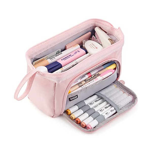 HVOMO Pencil Case Large Capacity Pencil Pouch Handheld Pen Bag Cosmetic Portable Gift for Office School Teen Girl Boy Men Women Adult (Pink)