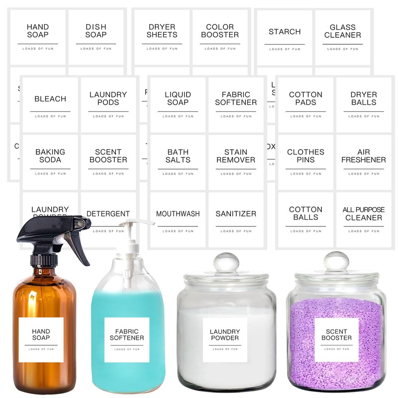 36 PCS Minimalist Laundry Labels for Jars, Loads of Fun Laundry Room Labels
