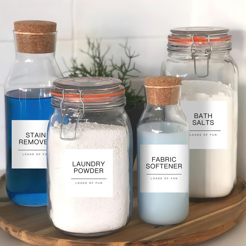 - 【Minimalist Design】: Our laundry stickers are designed in a minimalist style,they all have a uniform look,beautiful and generous.The bathroom and laundry labels add the perfect touch to the ordinary glass containers, pleasing to the eye.