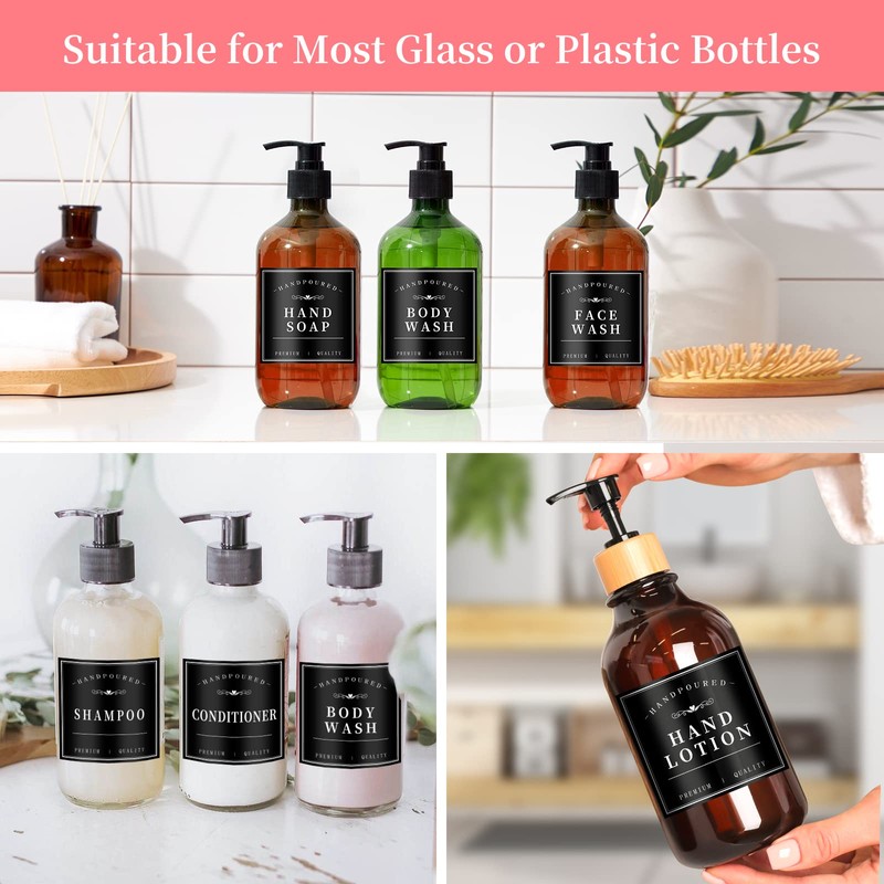 - 【Fashion Design】: Minimalist and stylish style, they can make ordinary bottles look so beautiful and elegant. This hand soap label, with a beautiful and bold print, is easy to read without glasses in the shower.