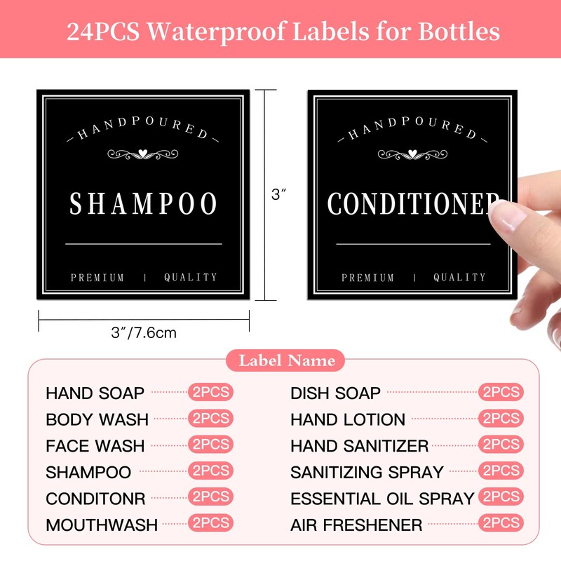 24 PCS black waterproof soap labels for bottles