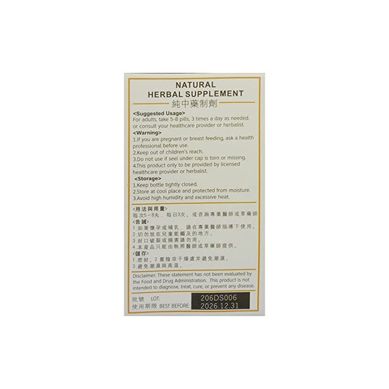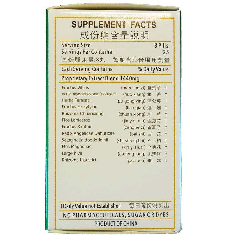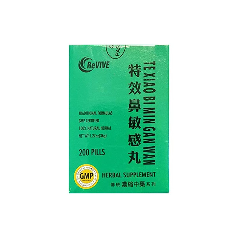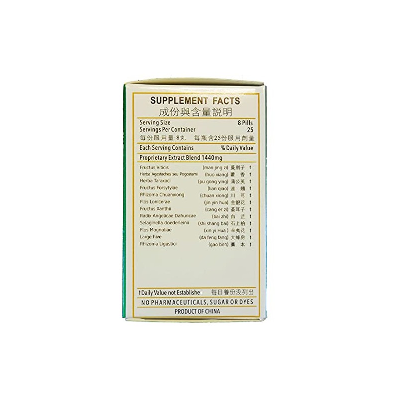Te Xiao Bi Min Gan Wan (Bi yan pian) is a Chinese Medicinal Formula that targets the head and sinuses. This formula has been used historically to ease seasonal Wind conditions with phlegm and congestion in the sinuses. 200 teapills per bottle. Contains: Man Jing Zi, Huo Xiang, Pu Gong Ying, Lian Qiao, Chuan Xiong, Jin Yin Hua, Cang Er Zi, Bai Zhi, Shi Shang Bai, Xin Yin Hua, Da Fang Feng, Gao Ben. NOTE: This statement has not been evaluated by the Food and Drug Administration. This product is not intended to diagnose, treat, cure, or prevent any disease. Contains Rhubarb. Typical dosage is 8 teapills 3 times per day.