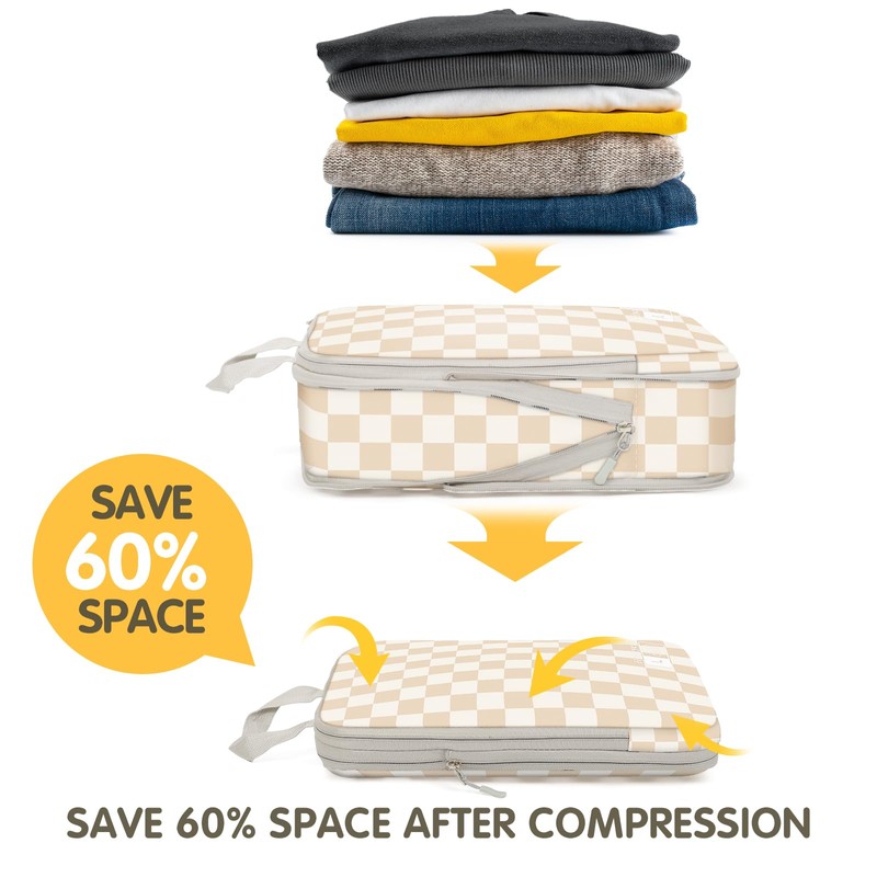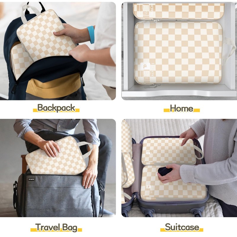 8 Set Compression Packing Cubes Travel, Lightweight Durable Packing Cubes Compression, Accessories Bags Packing Cubes for Travel Luggage Organizer (Khaki Checkered)