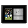 Professionally made in our studio, this A4 (330x245mm) framed Ronaldinho display makes for an ideal gift idea. This laser printed quality photograph is mounted in a precision cut three windowed acid-free matt black display board. To the left of the display there is the main image. To the right of the display there are two metallic effect plaque areas for printed copies of the name and autograph signature. This display comes ready framed in a sleek black polycarbonate frame that compliments the matt mount display and a clear perspex front to keep it dust free and clean. Lightweight, but of the highest quality, these make the ideal Christmas/Birthday gift for fans of all ages, and best of all, it definitely won't break the bank!