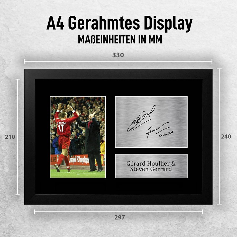 HWC Trading Gerard Houllier & Steven Gerrard Liverpool Gifts Printed Autograph For Football Fans And Fans - A4 Framed
