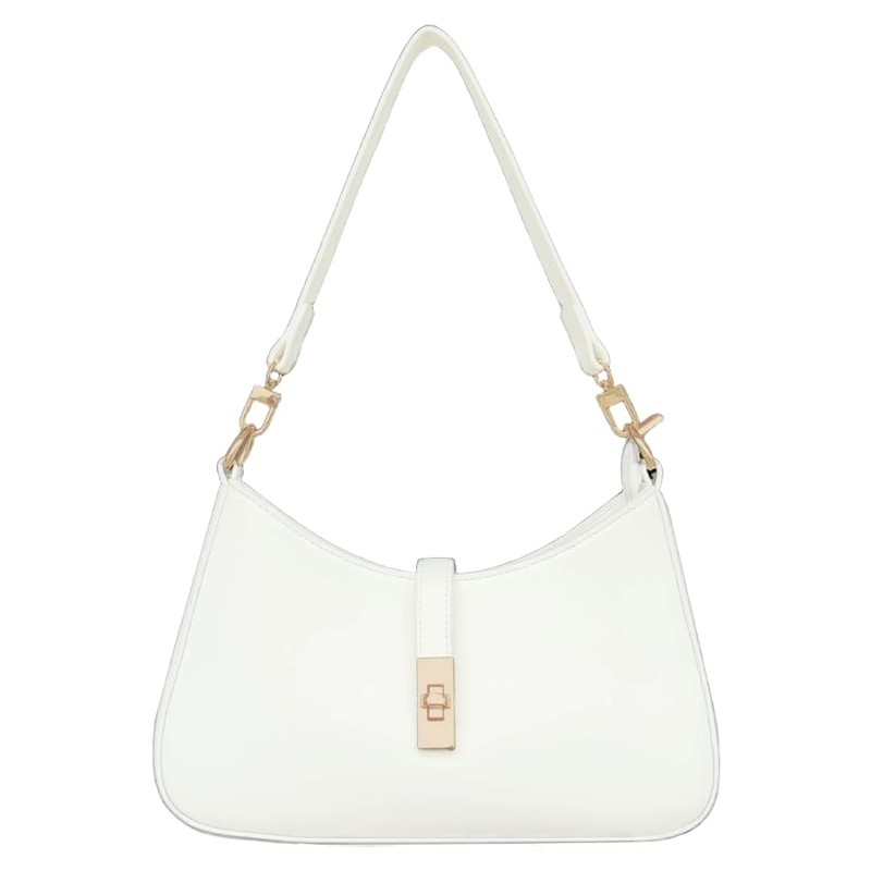 hwnnon White Elegant Twist Lock Crossbody Bag