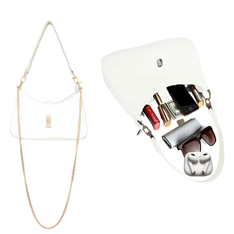 - Dual strap system:Leather for armpit/hand carry, metal chain for shoulder/crossbody.