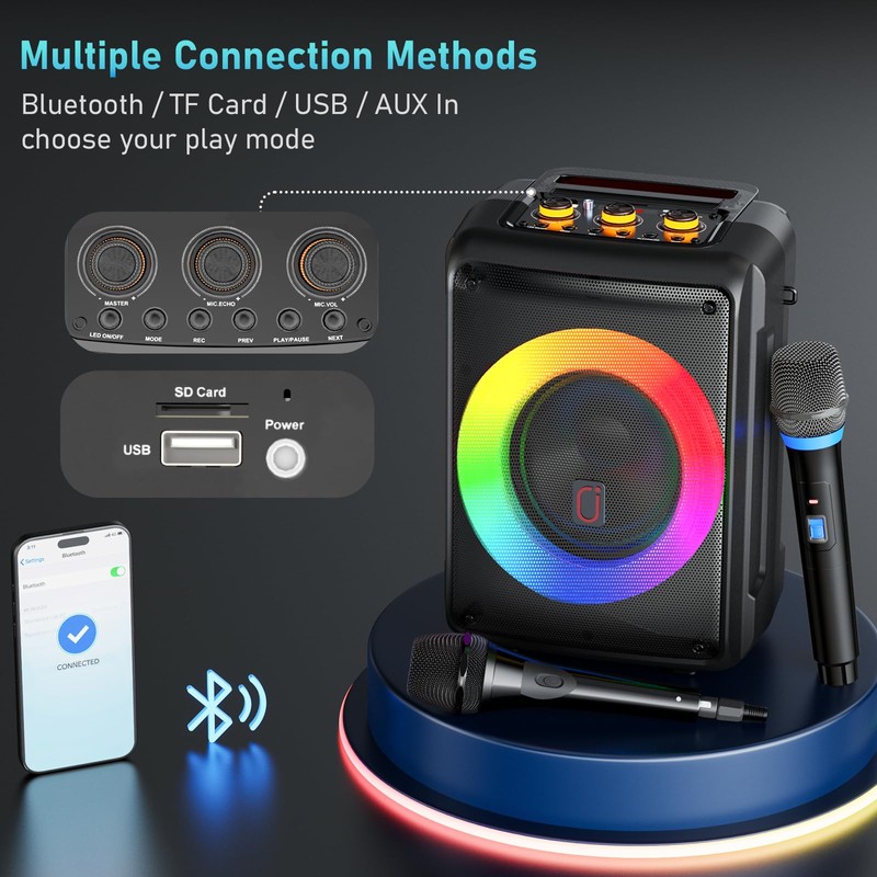 - 【Professional Karaoke Machine & Ideal for Any Occasion】The D13 speaker makes an amazing gift for all ages—whether it’s for your friends, partner, parents, or kids. With its versatile features and user-friendly design, it’s a gift everyone will love. Ideal for birthdays, Christmas, and special celebrations, this is more than a speaker—it’s a gift that brings people together through music.