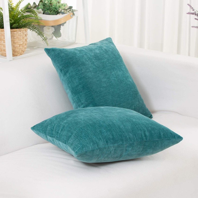 HWY 50 Teal Throw Pillows Covers 16x16 Inch for Couch Sofa Living Room Bed, Chenille Soft Comfy Solid Square Throw Pillow Case Set Cushion Cover Pack of 2 Decorative