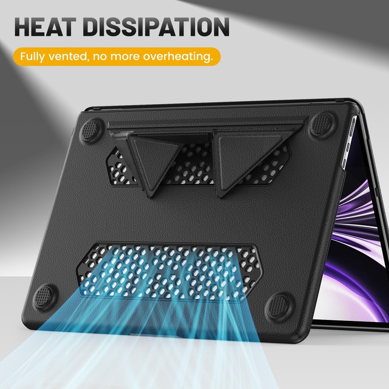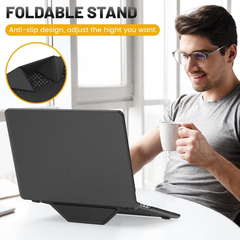 - Foldable Kickstand : Designed with foldable stand, which gives a height adjustment to prop the laptop up, offering more friendly typing and viewing angles. The vents on the bottom can also help the heat dissipation, comfortable for daily use, the built-in stand can be folded up when not in use.