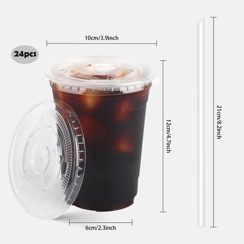 - Package Include: You will receive 24 sets of 16oz clear plastic cups with 24 individually lids and straws. Enough quantity meet your needs.