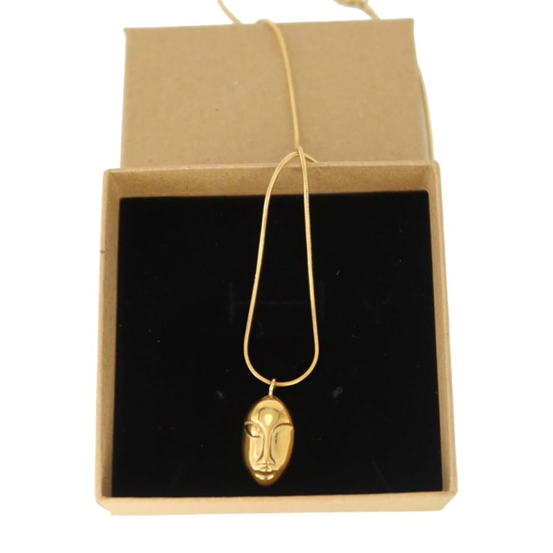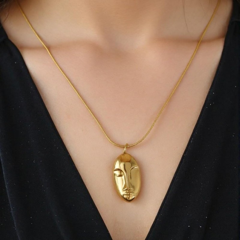HXFIZQQ 18K Titanium Steel Gold-Plated Bohemian Style Face Pendant Ladies Necklace - Adjustable Length, Simple Collarbone Chain, Ethnic Style Jewelry - Gift for Women.
