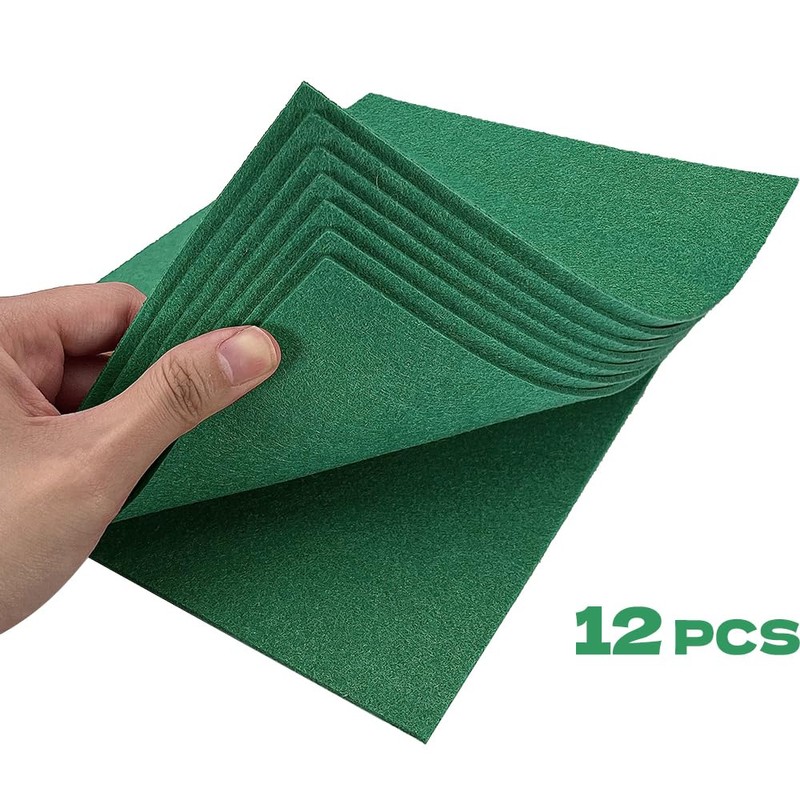 HXJDAM Stiff Felt 2 mm Felt Mat, 12 Pieces Craft Felt, 20 x 30 cm x 2 mm Thick Felt for Crafts, Felt Fabric Squares for DIY Project (Felt Grass Green)