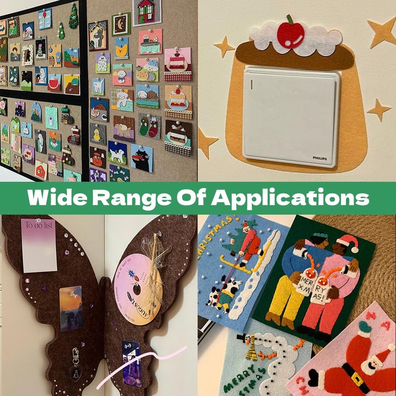 - DIY creation: craft felt is thick and strong for making storage box, key ring, frame box, purse, coin bag, mouse pad, coaster, Christmas tree and gift sewing DIY crafts, etc. Felt fabric is also a great material for home decoration, can be used to create beautiful table decorations. Bring more fun to life with your creativity