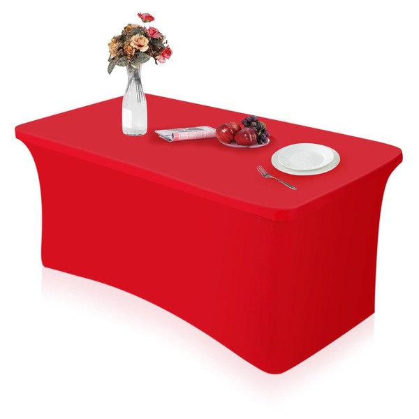 HXMJIED 6ft Table Cloth, Red Stretchable Table Cloth, Fitted Spandex Table Co...