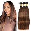 Hxxcoup Sew-in Bundles Real Hair Wefts for Sewing Human Hair Bundles Straight P430 Highlight Brown Double Weft Extensions 20 22 24 Inches with Minimal Smell Minimal Tangle, 100 g/pc for Women