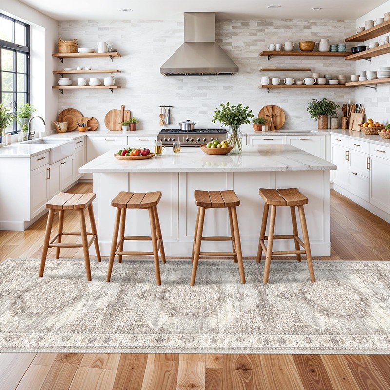 • 【Tips for Creases】 The kitchen runner rugs may have slight creases from shipping, but there's no need to worry. Simply lay the rug flat in a spacious area and allow it to naturally unfold; the creases will disappear within a week. For more pronounced creases, gently iron the back with a steam iron for quicker recovery.