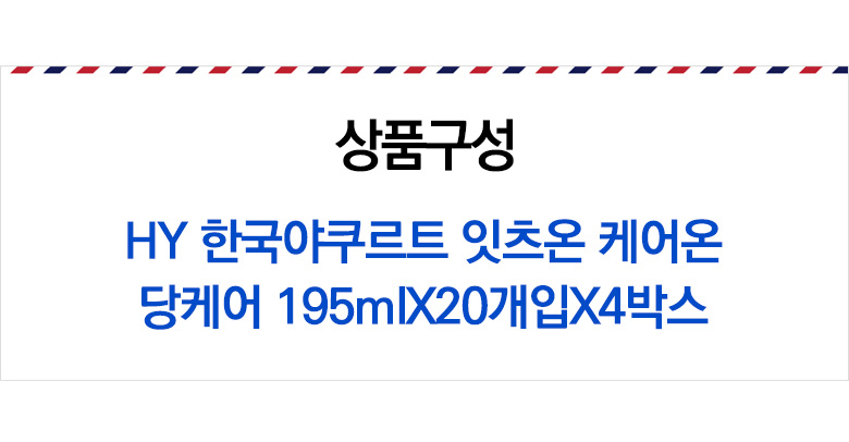 HY 한국야쿠르트 잇츠온 케어온 당케어 195mlX20개입X4박스
