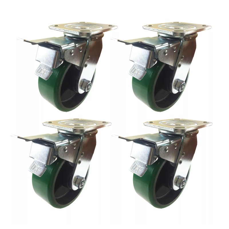 Hy-Weld 5" x 2" Polyurethane on Cast Iron (Green) - 4 Swivels with Total Lock Brake