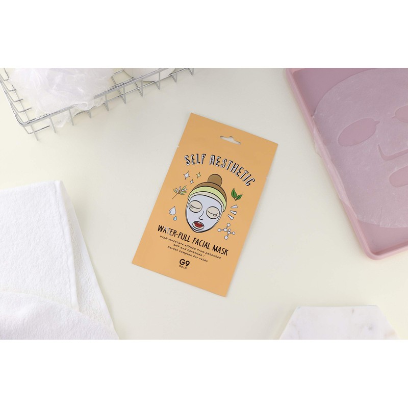 Hyaluron cloth mask with 9 herbal extract mixture and ceramide for extra moisture. Also suitable for sensitive skin, men and women water-full facal mask from G9Skin. 23 ml x 1 piece.